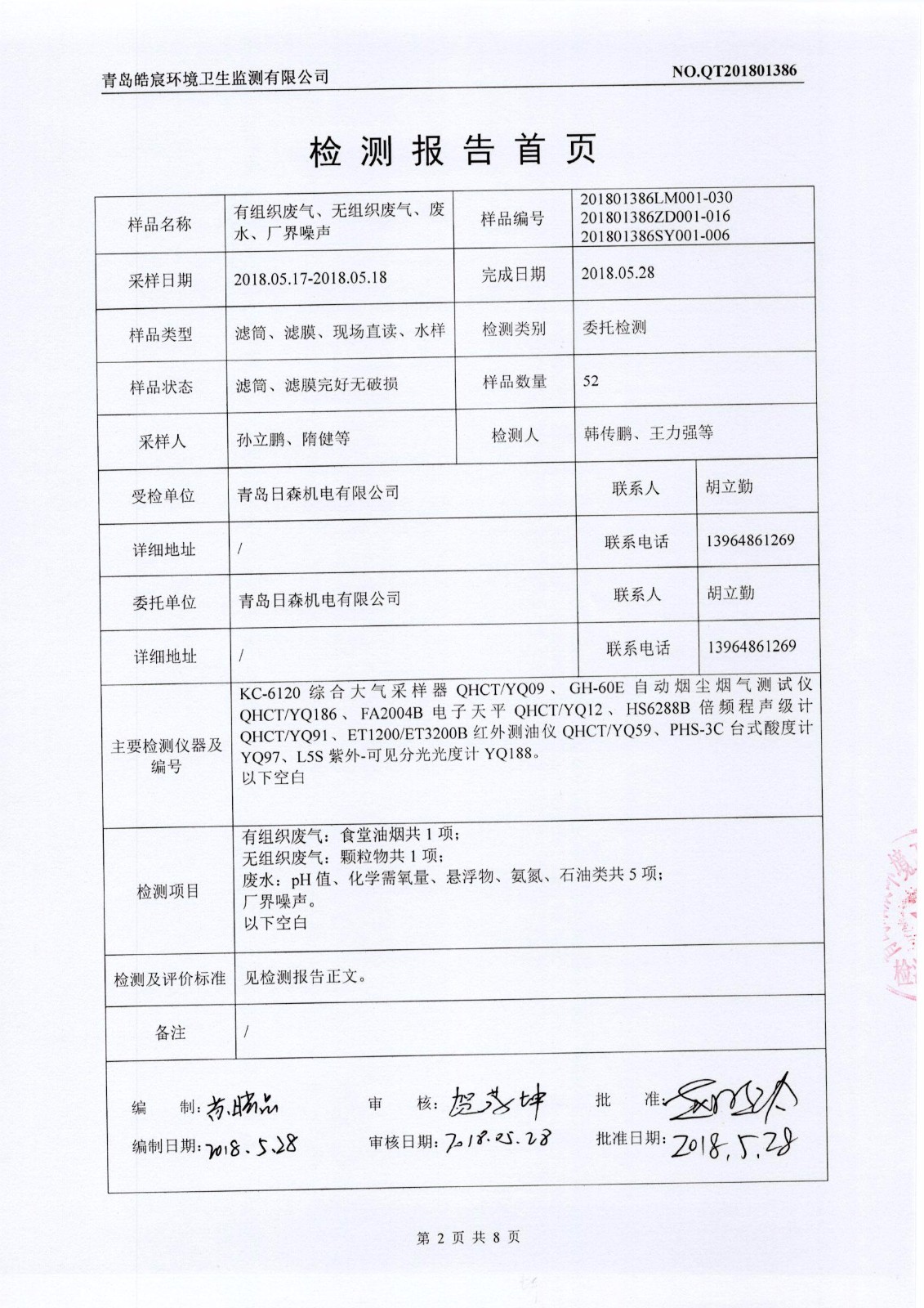 關(guān)于日森機(jī)電有限公司廢水、廢氣、噪聲監(jiān)測(cè)報(bào)告的公示